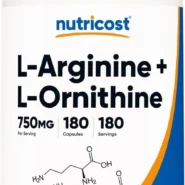 آرژنین و اورنیتین 750 میلی گرم ناتری کاست 180 عددی Nutricost L-Arginine L-Ornithine 750mg; 180 Capsules