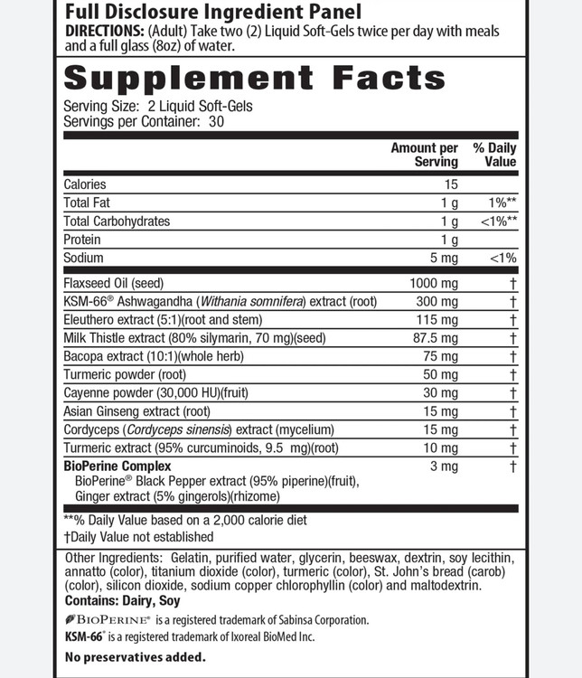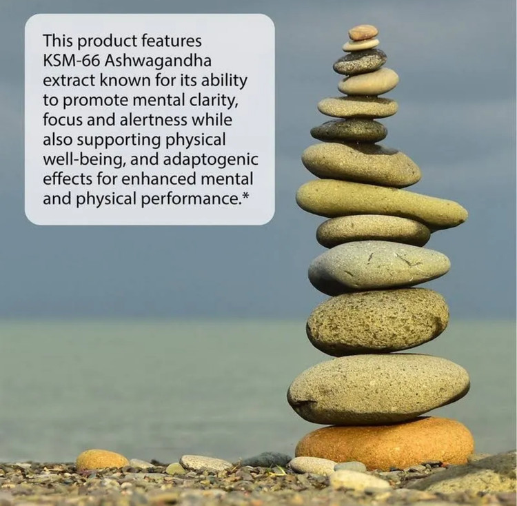این محصول دارای عصاره KSM-66 Ashwagandha است که به دلیل توانایی آن در ارتقای وضوح ذهنی، تمرکز و هوشیاری و همچنین حمایت از سلامت جسمانی و اثرات تطبیقی برای افزایش عملکرد ذهنی و فیزیکی شناخته شده است.* KSM-66 با عصاره هایی از ترکیبی از آداپتوژن‌های مکمل مانند Eleuthero، Bacopa، Cordyceps و Ginseng – که همگی به طور سنتی در فرمول‌های زنده‌کننده‌ای استفاده می‌شوند که بر روی پاسخ به استرس تمرکز دارند. سلامتی و تقویت محافظت آنتی اکسیدانی که برای حفظ سلامت عمومی و طول عمر مهم هستند.