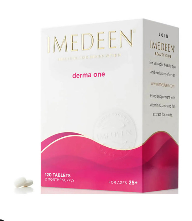 قرص مکمل ایمدین Imedeen Derma One درما وان صورتی دقیقاً طبق نیاز پوست افراد ۲۵ ساله و بالاتر فرموله شده است تا با اولین نشانه‌های پیری پوست در این افراد مقابله کند. با مصرف ایمدین درما وان صورتی رطوبت پوست شما به‌خوبی حفظ می‌شود بنابراین خطوط سطحی و چین‌ و چروک‌ های پوست شما کمتر مشخص خواهند شد و این قرص مانع از ایجاد چین‌ و چروک‌ بیشتر بر روی پوست شما می‌شود.