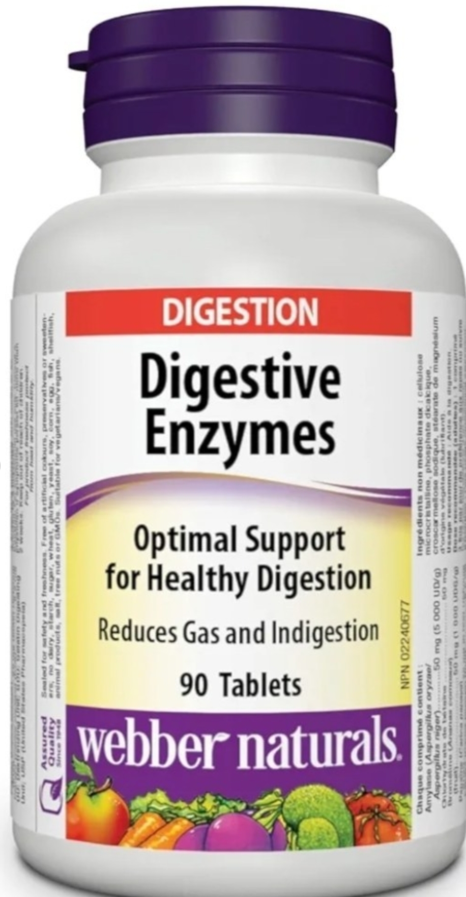 آنزیم‌های گوارشی از Webber Naturals برای پروتئین‌ها و کربوهیدرات‌ها به هضم طبیعی کمک کرده و آن را بهبود می‌بخشند. آمیلاز به تجزیه کربوهیدرات‌ها کمک می‌کند در حالی که پاپائین و بروملین پروتئین‌ها را تجزیه می‌کنند. بتائین HCL با ایجاد یک محیط مطلوب در معده، هضم را تقویت می‌کند. این فرمول همچنین ممکن است بهبودی از آسیب‌های ورزشی و التهاب را بهبود بخشد.