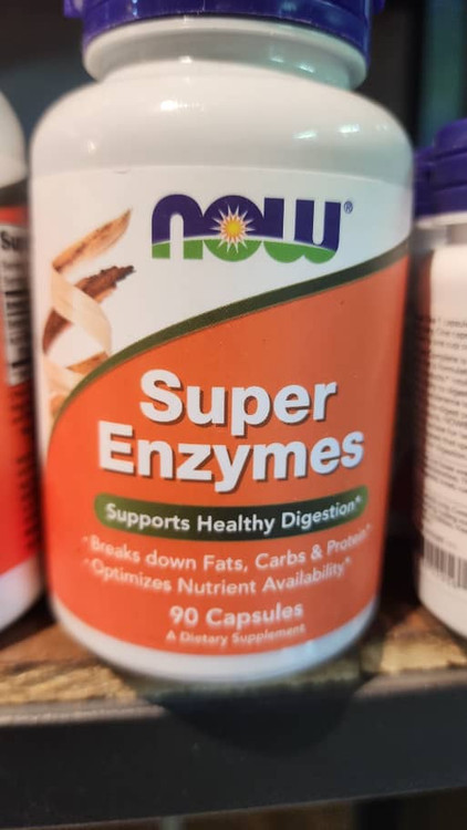 Now Foods Super Enzymes حاوی یک فرمول آنزیمی متعادل برای تکمیل آنزیم های تولید شده توسط خود بدن است.