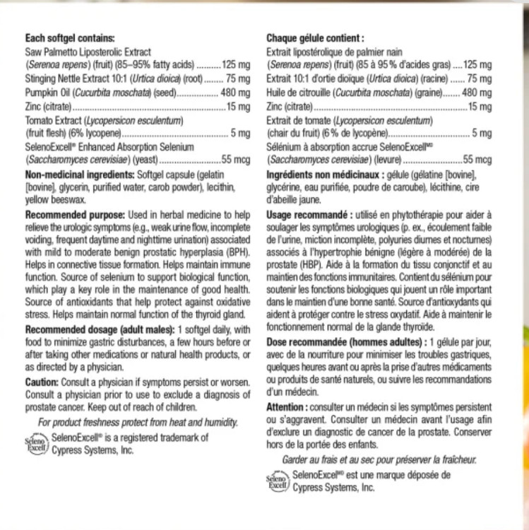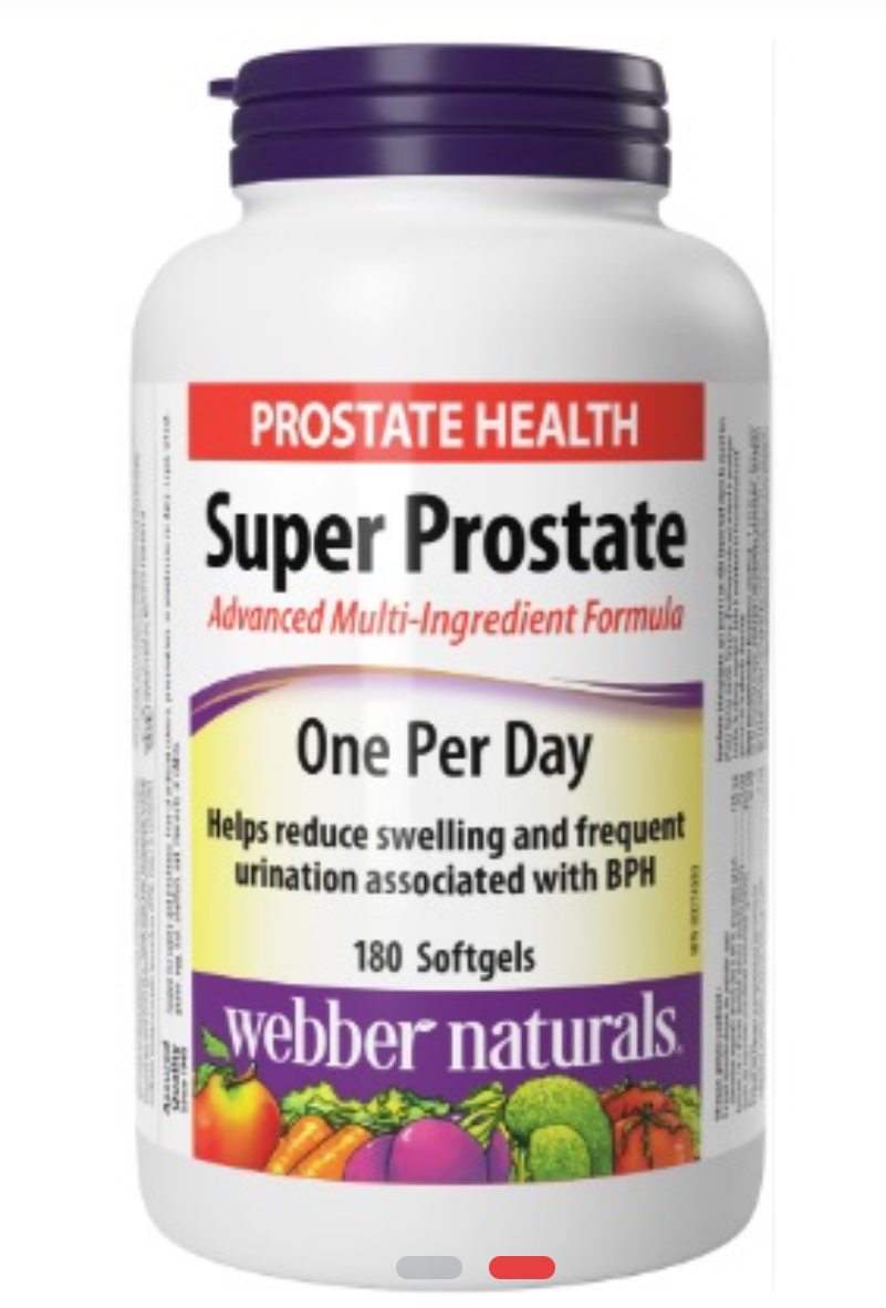 Super Prostate از Webber Naturals دارای ویژگی های نخل اره و گزنه، دو گیاه دارویی است که به طور سنتی برای کمک به سلامت پروستات و کاهش علائم هیپرپلازی خوش خیم پروستات خفیف تا متوسط (BPH) استفاده می شود. این فرمول یک روزه همچنین حاوی روغن دانه کدو تنبل و مواد مغذی آنتی اکسیدانی از جمله سلنیوم، روی و لیکوپن است.