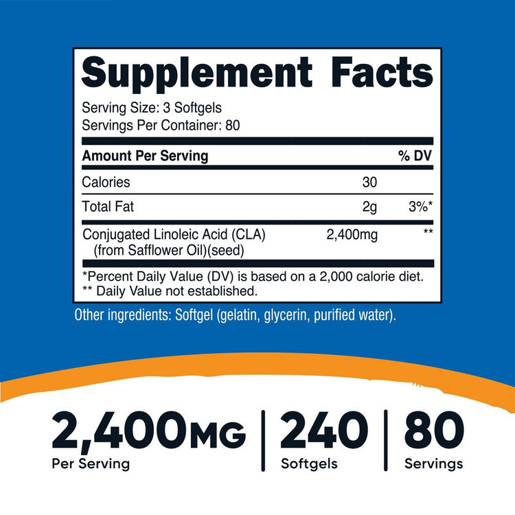 هر وعده (۳ سافتژل) حاوی ۲۴۰۰ میلیگرم CLA میباشد که به طور ویژه برای ورزشکاران و افرادی که به دنبال مدیریت وزن و کاهش چربی بدن هستند توصیه میشود.