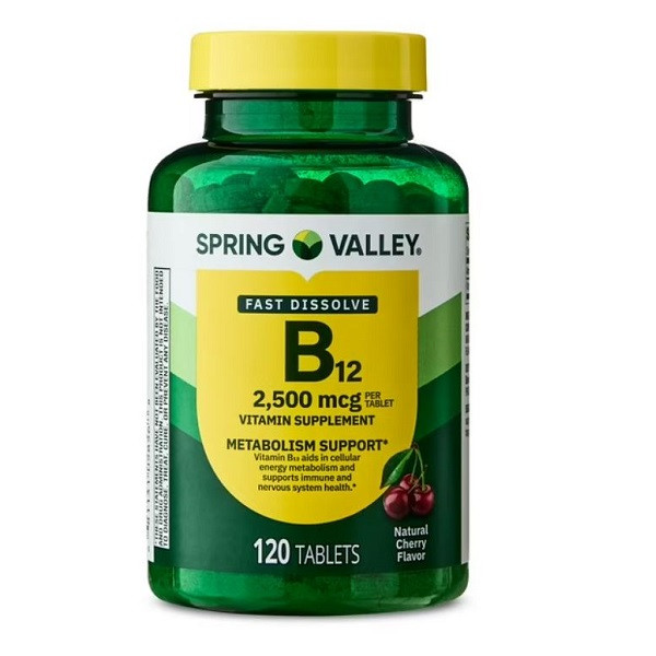 Spring Valley Vitamin B12 Quick-Dissolve Tablets با فرمول گیاهی، بدون گلوتن، لاکتوز، نمک، رنگ یا طعمدهنده مصنوعی تولید شده است. فرمول حلشونده زیرزبانی آن باعث جذب سریعتر و بهتر ویتامین میشود، بهویژه برای افرادی که جذب خوراکی B12 در دستگاه گوارش آنها دشوار است.