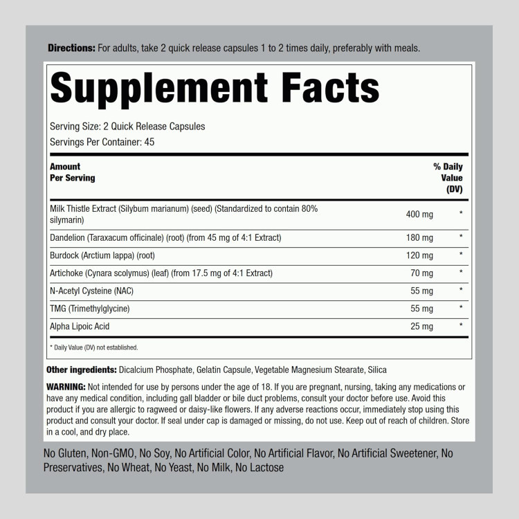 مزایا: حمایت از بازسازی کبد، محافظت از کبد در برابر سموم، و تقویت فرآیند سم‌زدایی طبیعی بدن.
