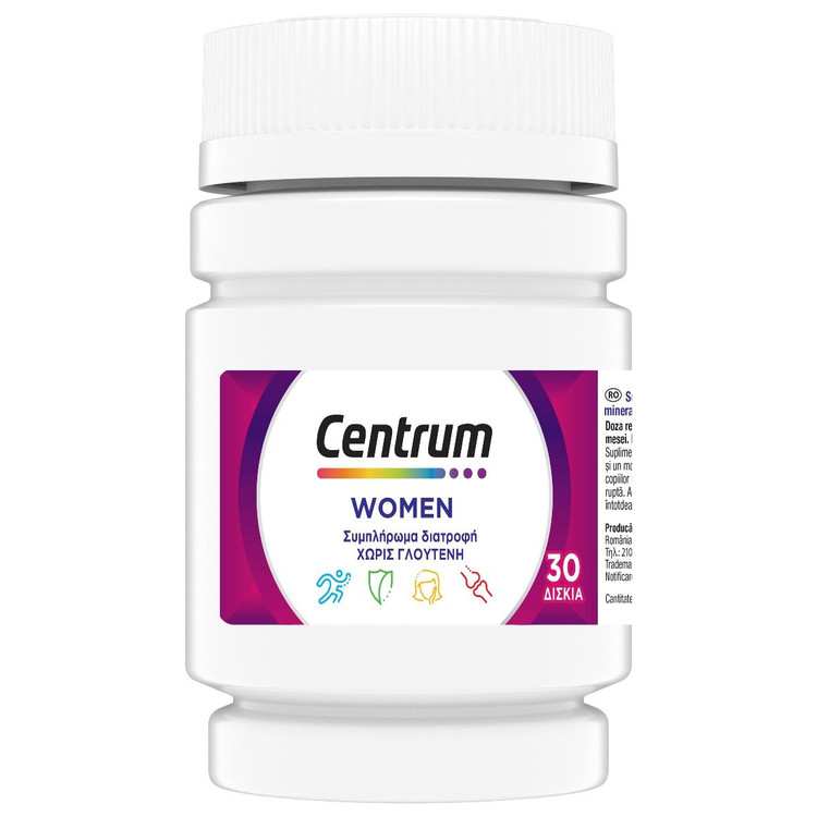 Centrum Women حاوی 100٪ یا بیشتر از ارزش روزانه ویتامین های D3، B6، B12 و بیوتین است و فاقد GMO و گلوتن می باشد.