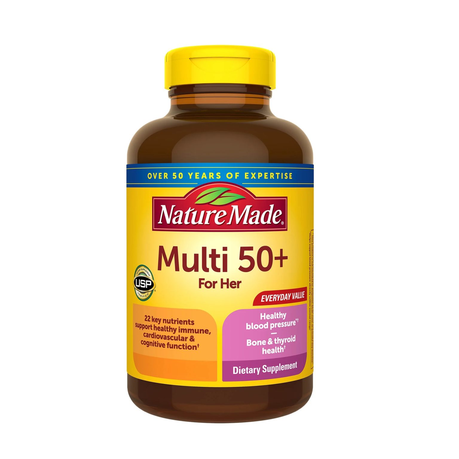 روز خود را با مولتی ویتامین زنانه 50+ نیچرمید که مخصوص خانم های 50 سال و بالاتر ساخته شده است شروع کنید. هر قرص مکمل نیچر مید 22 ماده مغذی کلیدی را برای حمایت تغذیه ای روزانه و برای تأمین نیازهای در حال تغییر زنان بالای 50 سال فراهم می کند.