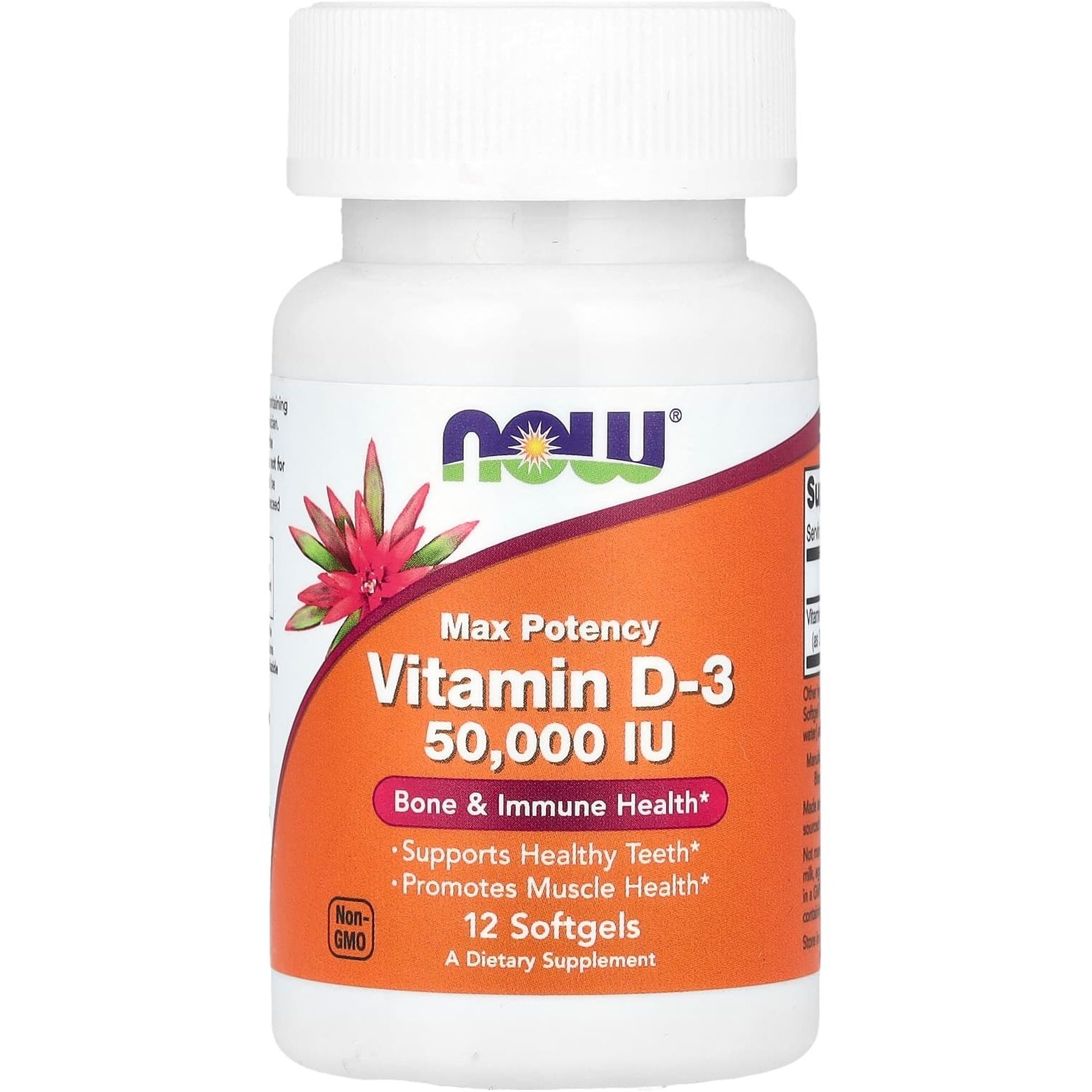 ویتامین D3 با دوز بسیار بالا 50,000 واحد 12 عددی – NOW Foods Vitamin D-3 50,000 IU Max Potency