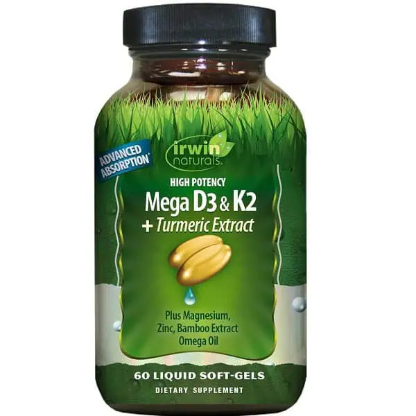 ویتامین D3 و K2 و عصاره زردچوبه اروین نچرالز 60 عدد Irwin Naturals High Potency Mega D3 & K2 + Turmeric Extract حاوی منیزیم، روی، عیاره بامبو و روغن امگا 3 می باشد. ویتامین‌های D3 و K2 ویتامین‌های محلول در چربی هستند که نقش مهمی در حفظ سلامت کلی از جمله سلامت استخوان دارند.