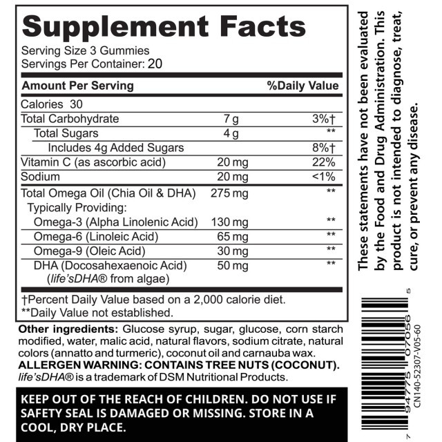 فرمولاسیون این مکمل ترکیبی از امگا 3، امگا 6 و امگا 9 است. این ویتامینها عملکرد مستقیمی بر روی سیستم مغزی و عصبی دارند.