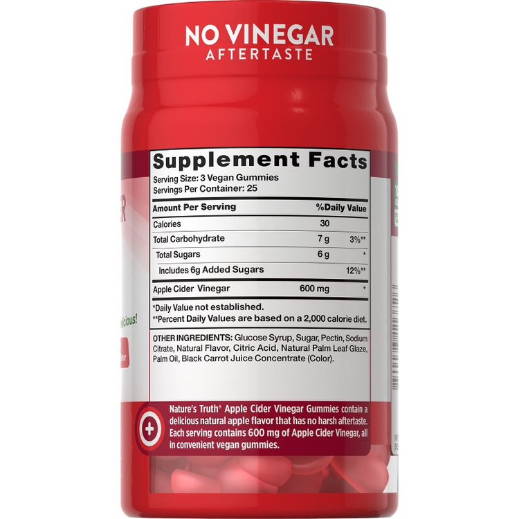 سرکه سیب هرگز اینقدر مزه نداشت! سرکه سیب که به طور سنتی در شیوه های سلامتی جامع استفاده می شود، قرن هاست که از سبک زندگی سالم حمایت می کند. با استفاده از صمغهای سرکه سیب Nature’s Truth، دیگر هرگز نگران طعم قوی سرکه نخواهید بود! تمام مزایای شگفت انگیز سرکه سیب سنتی را با صمغ های خوشمزه و با طعم سیب ما دریافت کنید. هر آدامس واقعاً طعمی شبیه به خوردن یک سیب تازه و آبدار دارد. شیرین و تند، این صمغ وگان خوشمزه، 600 میلی گرم سرکه سیب مفید در هر وعده برای شما فراهم می کند. اکنون، راحتتر از هر زمان دیگری میتوانید شات روزانه سرکه سیب خود را با لحظهای لذت از سیب عوض کنید.